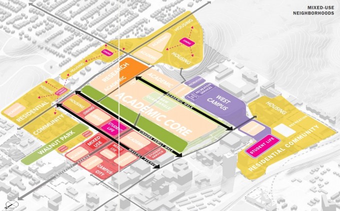 The Framework proposes to meld the ideas that guided campus development during these two periods. Like the “Campus + City” period, it looks for space to grow beyond the campus’ traditional boundaries, but like the “Strategic Investment” period, it seeks to draw a line between that new growth and the surrounding neighborhoods. The next period of campus development–which the Framework calls “Campus-City”–is ambivalent about about the University’s relationship to the City, but it should ultimately benefit the neighborhoods that surround the redeveloped campus.