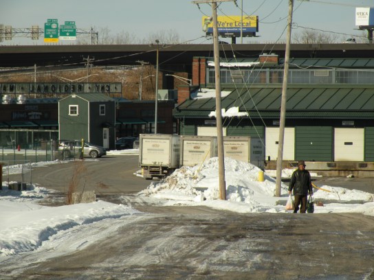 So it’s a mess that walking to the Market is so dangerous. There aren’t sidewalks between Hiawatha Boulevard and the Market. That’s a problem all year, but especially when it snows. No sidewalks mean no one has to shovel a path for people to walk, and so no one does. That forces some people to walk through the snow, and it pushes others onto the streets.