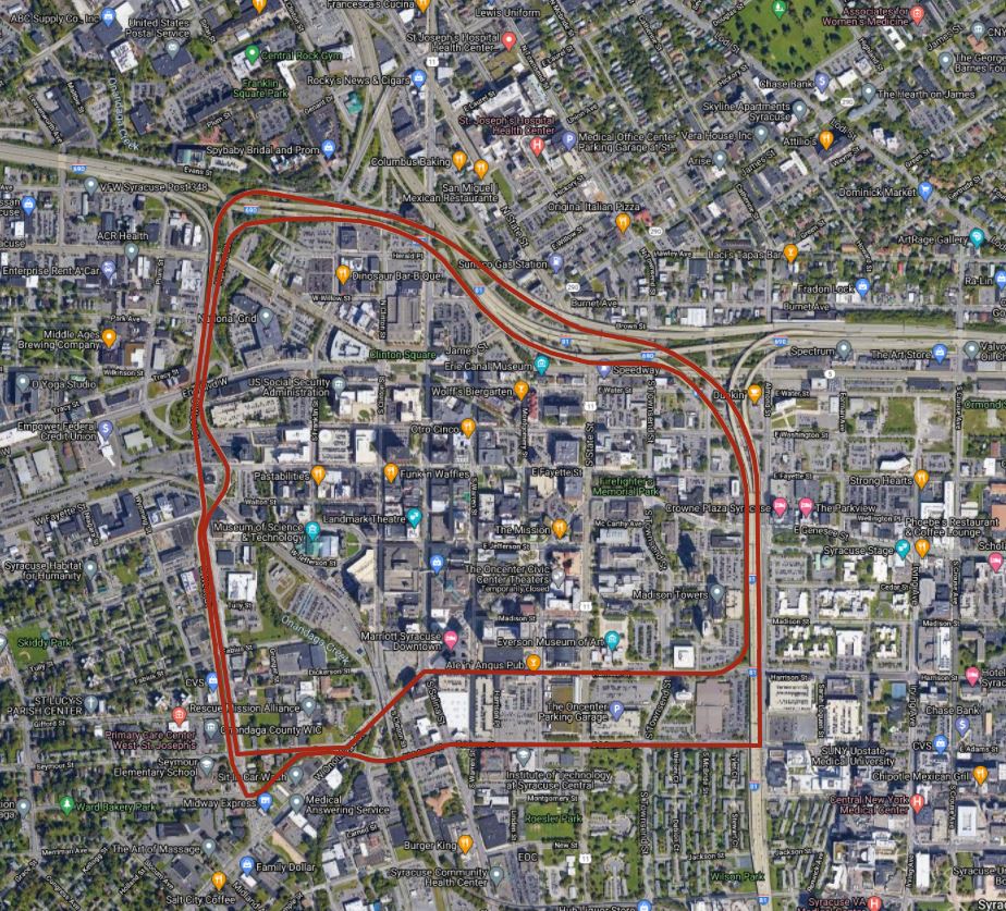 The I81 viaduct is part of the interstate highway system, but it’s also one piece of a high-speed traffic loop that encircles Downtown. Once it’s torn down, that loop won’t function the way that it’s supposed to, and that will give Syracuse a fantastic opportunity to reclaim West, Harrison, and Adams Streets as local streets rather than surface-level highways.