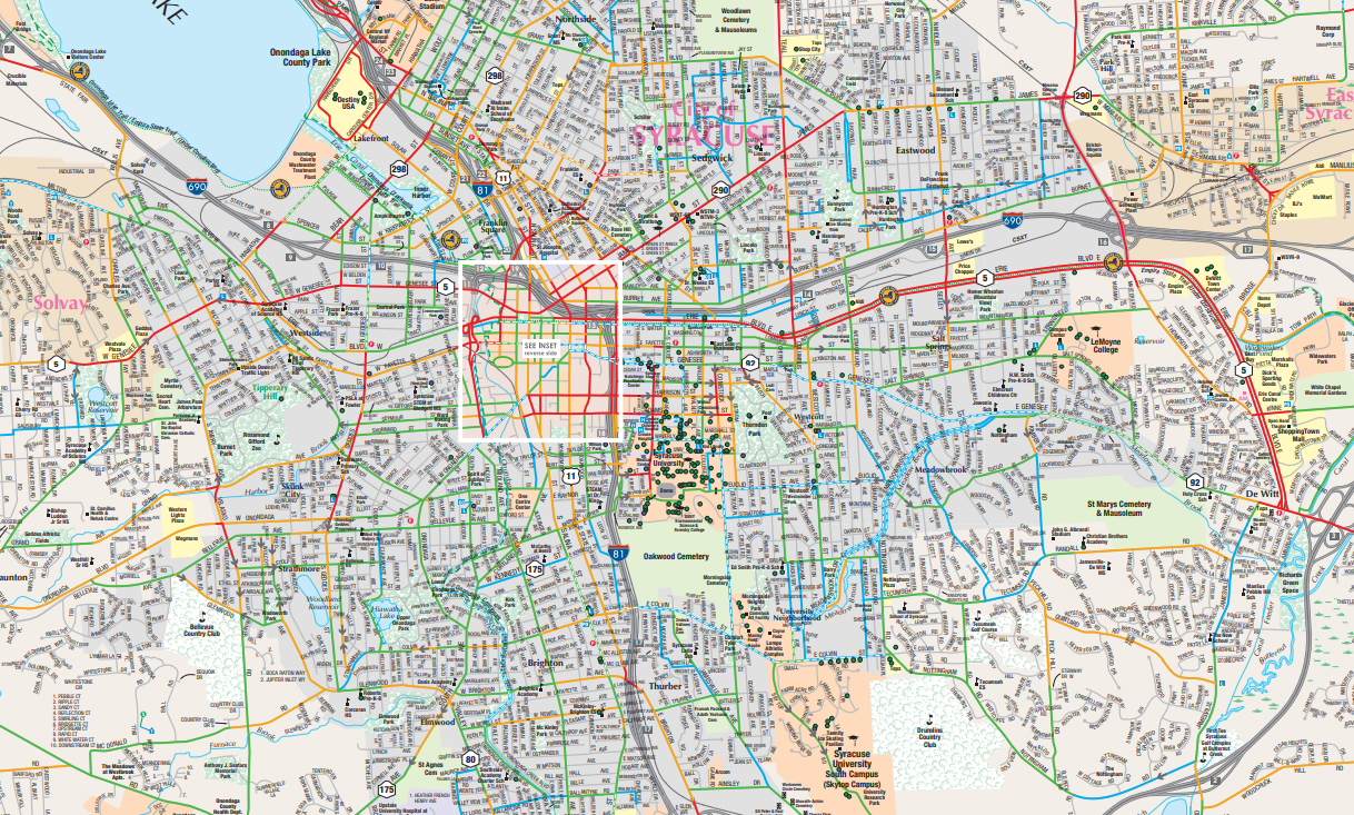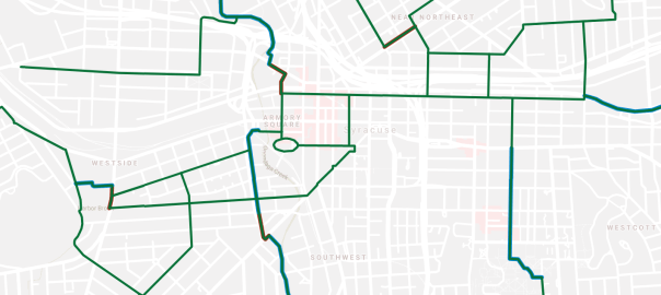 The hardest part about riding a bike in Syracuse is figuring out the best route to get somewhere new. The City’s hilly topography and terrible post-war city planning have combined to create very few safe flat routes across town, and so an unplanned bike trip is likely as not to put you in danger or wear you out.