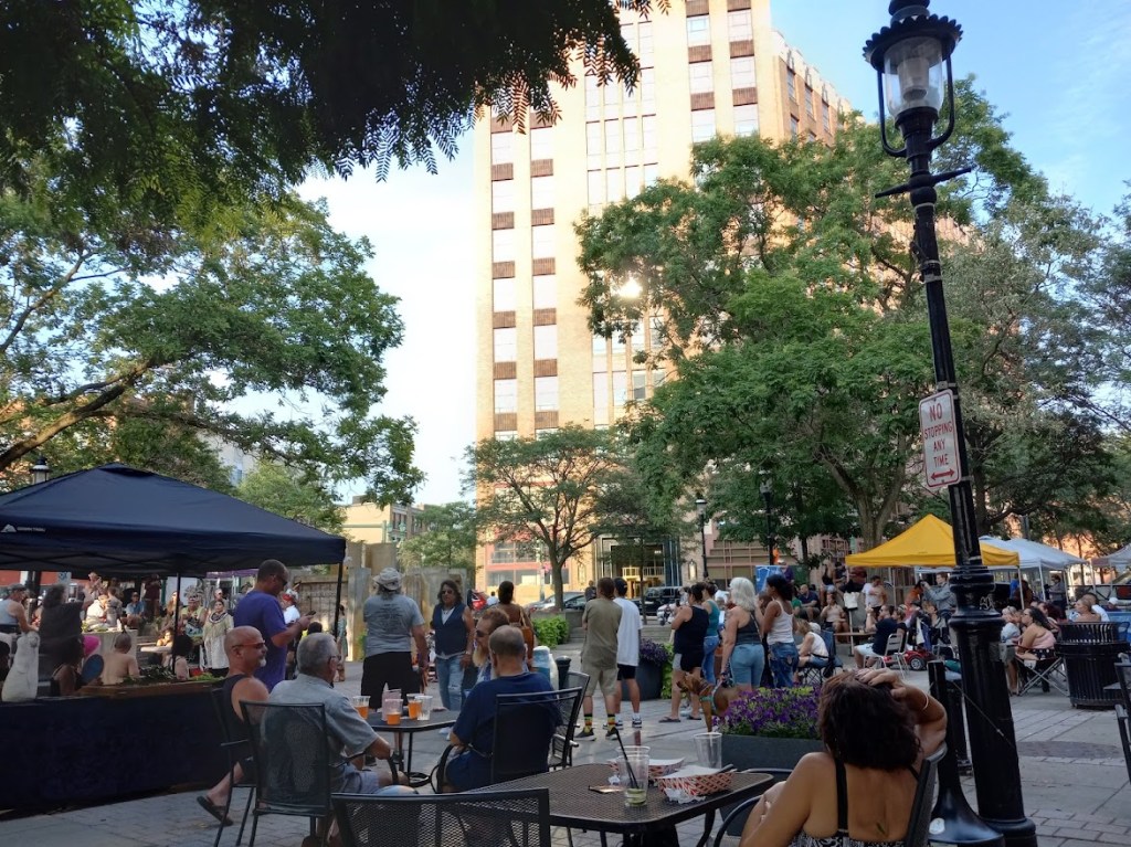 Streets in neighborhood commercial districts like Westcott are particularly well-suited to pedestrianization because surrounding businesses give lots of different people a reason to be in the space. This maximizes its use and fills it with the eyes and ears that are the best way to make public spaces feel safe. That’s what makes Hanover Square so successful, and it’s why City Hall should replicate this kind of public space across Syracuse in places like Walton Street, Amos Park, and Hawley-Green.