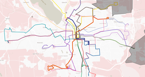 That’s the central promise of Centro’s service: the buses might not run very often, and they might not run very fast, but if you catch one headed Downtown, then you have access to a pretty large area of Onondaga County.