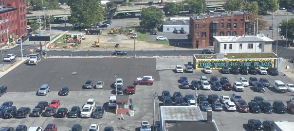 Must this be the place? It’s a good mural and a great song, but seeing such good public art surrounded by a sea of surface parking is….. depressing. Is this the highest and best use of a large lot Downtown, directly across the street from one of the highest rent apartment buildings in the region? Is the amount of property tax, or lack thereof, generated helping the fiscal health of the City? How can we encourage a better future for the block surrounding the mural?