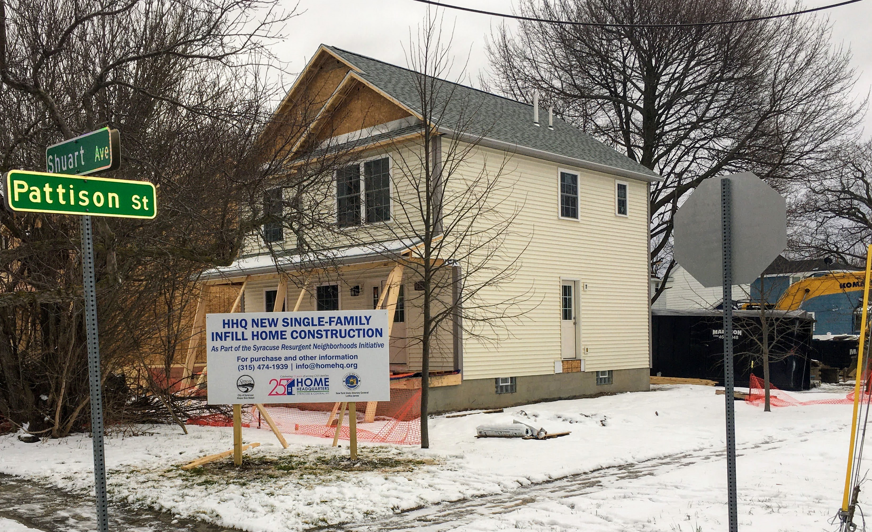 With so much housing rotting away every year, Syracuse needs new construction just to house a stable population. That’s the idea behind City Hall’s Resurgent Neighborhoods Initiative. They assemble contiguous vacant parcels in targeted neighborhoods and build brand new houses to fill the space left by demolished dilapidated housing.
