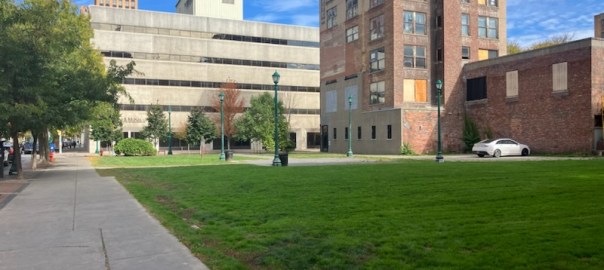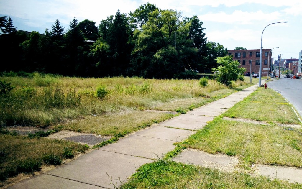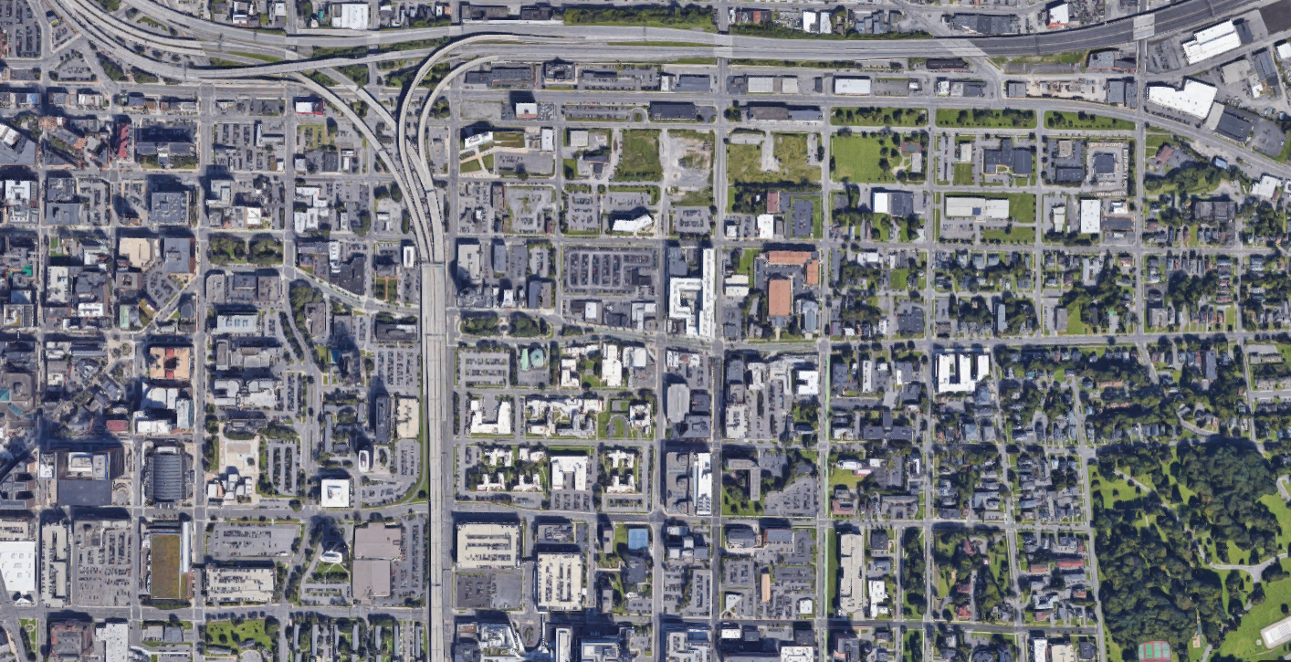 By 2021 the neighborhood was dominated by vacant land and parking lots. Entire blocks of housing have been demolished, and many small streets have been either eliminated (Renwick, Washington, Irving, Cedar, McBride, Jefferson, Madison) or widened (Harrison, Adams, Almond, Townsend) in order to make the area easier to drive around at the expense of people on foot.