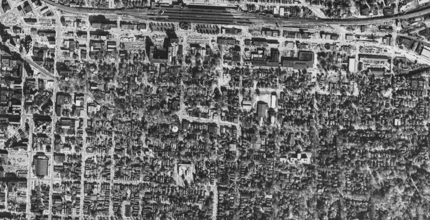 In 1953, the vast majority of this neighborhood was covered in housing, but it was also served by many small businesses, schools, churches, and synagogues. Small streets laid out before the Civil War cut the land up into small blocks, making the neighborhood easier to get around on foot.