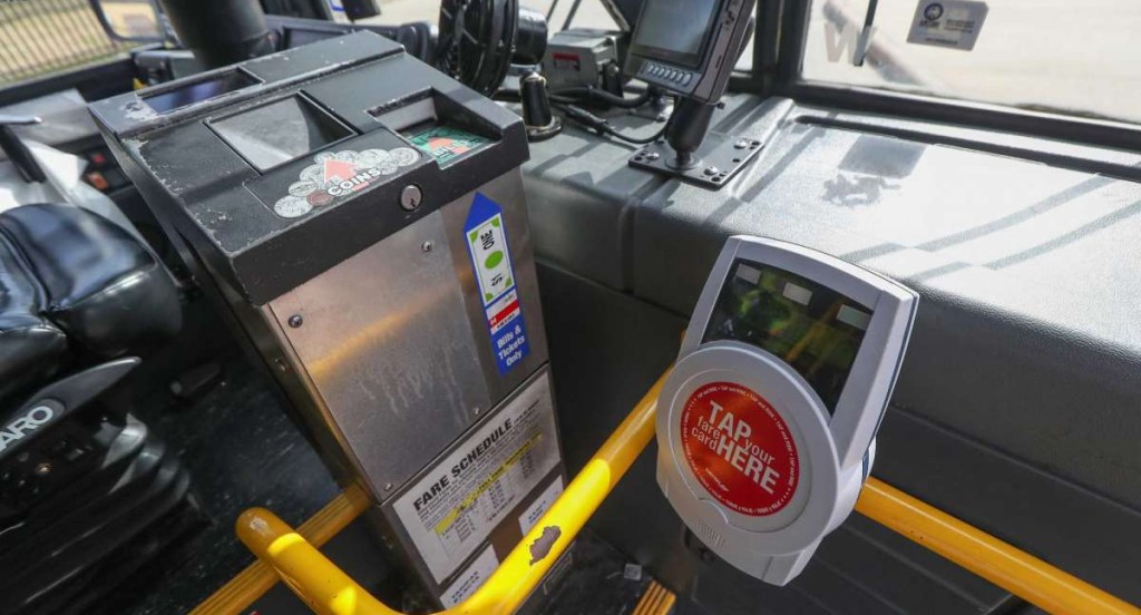 Right now, paying the bus fare requires some advanced planning. The regular fare is $2, and you have to pay in exact change. That means finding four dollar bills or sixteen quarters or forty dimes or some combination of those before you leave the house in order to make a round trip. People just don’t carry cash as commonly as they used to, and it’s not unusual to not have the right combination of bills and coins to pay the bus fare. (you can also pay with a multi-ride pass, but that requires even more advanced planning since you’ll have to have purchased it well ahead of time).