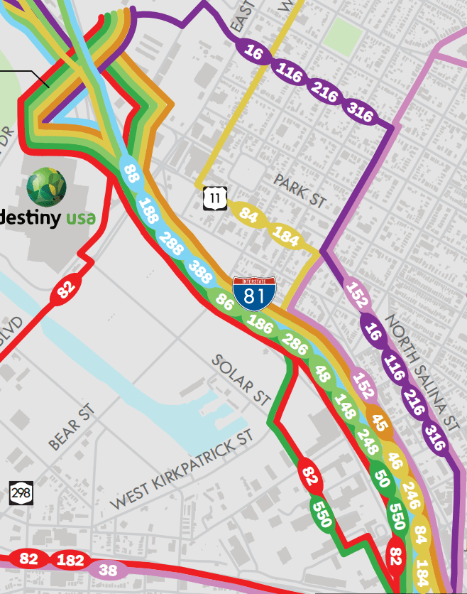 And what’s true for commuters is true for people who ride the bus for any other reason too. Someone living just off North Salina might be able to use the SU-RTC line to get to the Mall, but they’d need to connect to the Eastwood-OCC line to get to school at OCC, or the Valley-DeWitt line to visit family in Salt Springs. More lines going more places make the network more useful to more people.