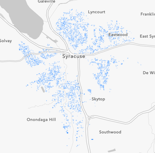 However, the current draft outright bad on ADUs is not the only regulation that would make them a practical impossibility for most homeowners—lot coverage regulations are another barrier. ReZone says that built structures can only cover 30% of the area of residential lots with single-family homes. But most homes in most Syracuse’s neighborhoods (except its post-war semi-suburban areas like Meadowbrook and Winkworth) already cover more than ⅓ of their lots. In these situations, it would be impossible to build an ADU in the rear yard (either as a standalone structure or as an addition to the house) even though the rest of the ordinance is written to encourage that kind of construction.